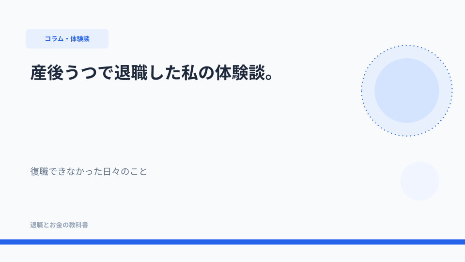メーカーの総務として5年働いて、産休に入って、育休を取って。「復職したら時短にしよう」「保育園が決まったらなんとかなる」——そう思っていた頃の自分が、別人のように遠い。この記事は、産後うつで退職するまでの私の記録です。同じ場所にいる誰かの目に留まったらいいなと思って書きました。公式LINEでも制度まわりの情報を配信しているので、あわせてどうぞ。