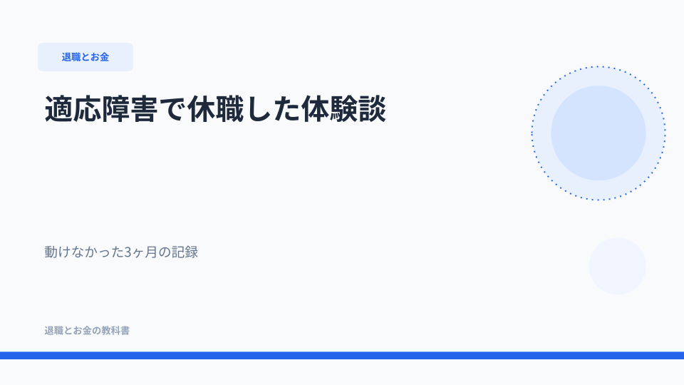 これは、適応障害で3ヶ月休職した私の記録。同じような朝を過ごしている人がいるなら、この先どうなったのか、全部書く。公式LINEでも制度まわりの情報を配信しているので、あわせてどうぞ。